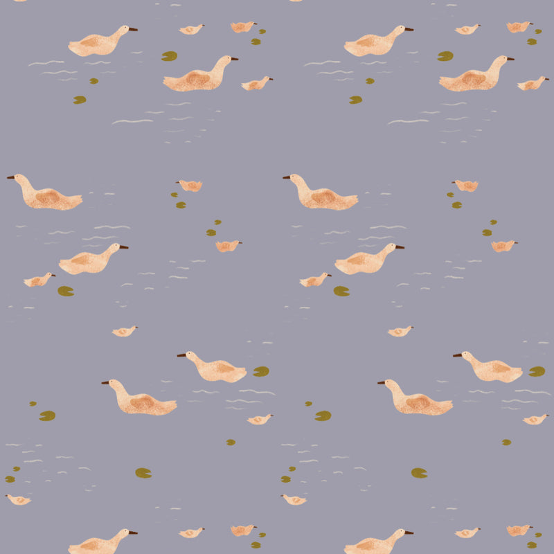 Behang ducks | 100 x 320 cm | Smokey periwinkle | Lotte Dirks