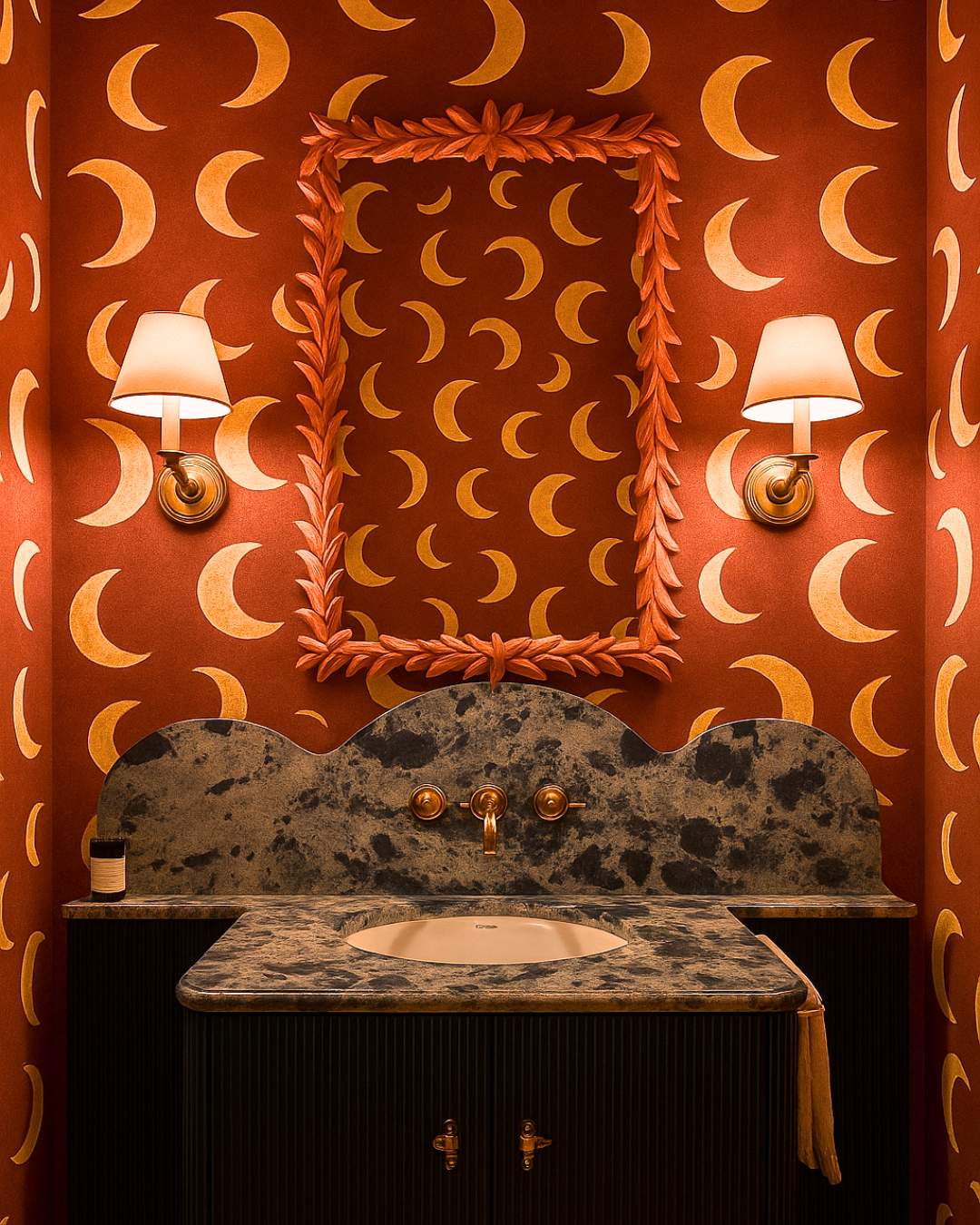 Behang moon | 100 x 270 cm | Rhubarb | Aniek Bartels
